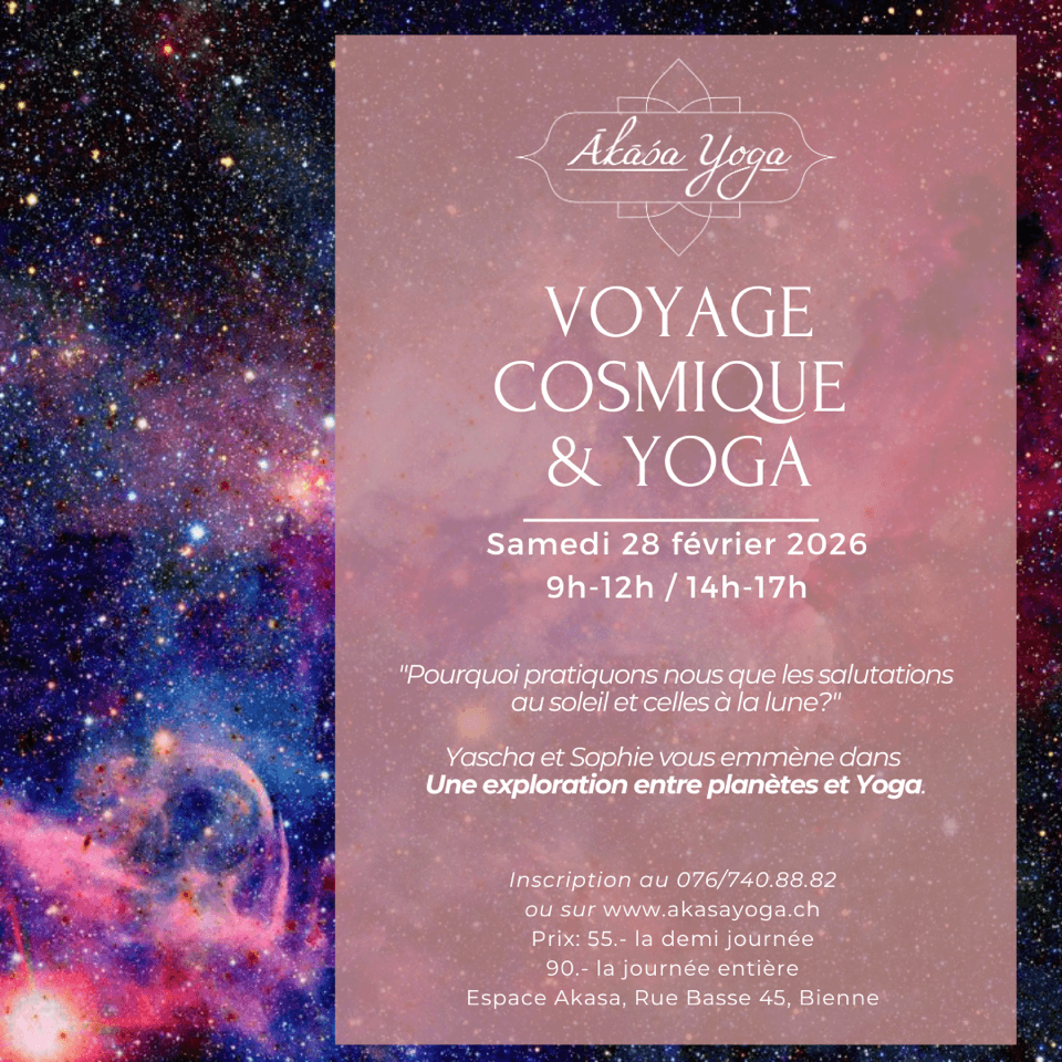 Voyage cosmique & Yoga + Ajouter à mon Agenda Google + iCal / Outlook export 00 jours 00 heures 00 minutes 00 secondes Date 28 Fév 2026 Heure 9:00 am - 5:00 pm Lieu Espace Akasa Partagez cet événement
